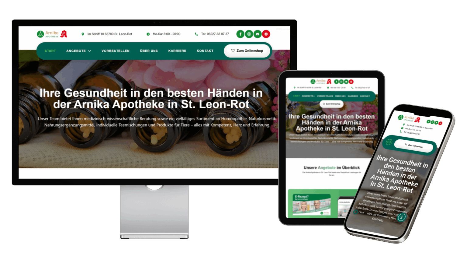 "Wir waren mit unserer bisherigen Webagentur total unzufrieden und sind deshalb zu WebdesignPassion gewechselt. Wir (Arnika Apotheke, St. Leon-Rot) arbeiten jetzt schon seit einem Jahr mit WebdesignPassion zusammen und es wurde immer auf unsere Vorstellungen und Wünsche eingegangen. Bei Fragen ist das Team immer gut zu erreichen und hilft stets schnell! Klare Weiterempfehlung!"